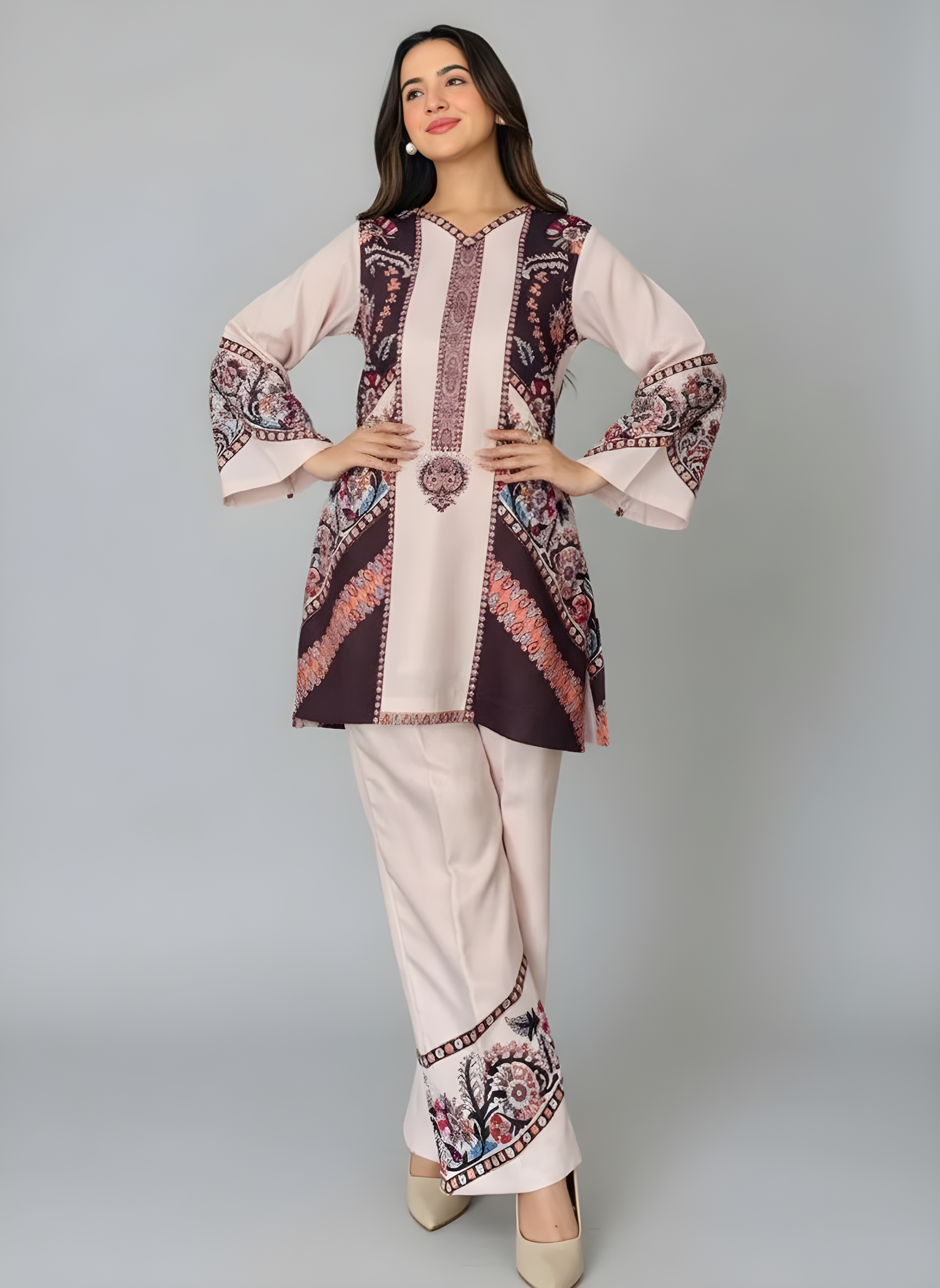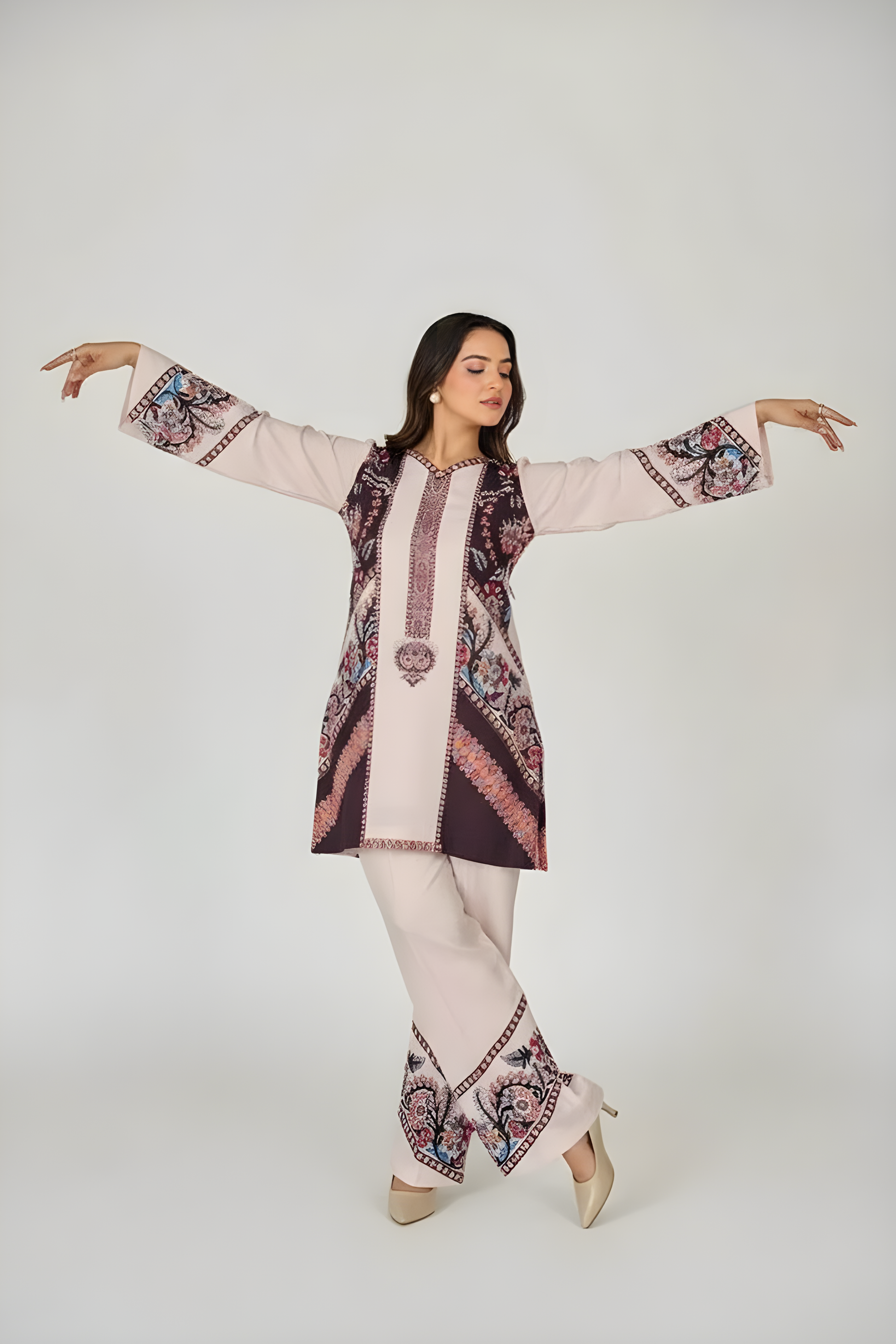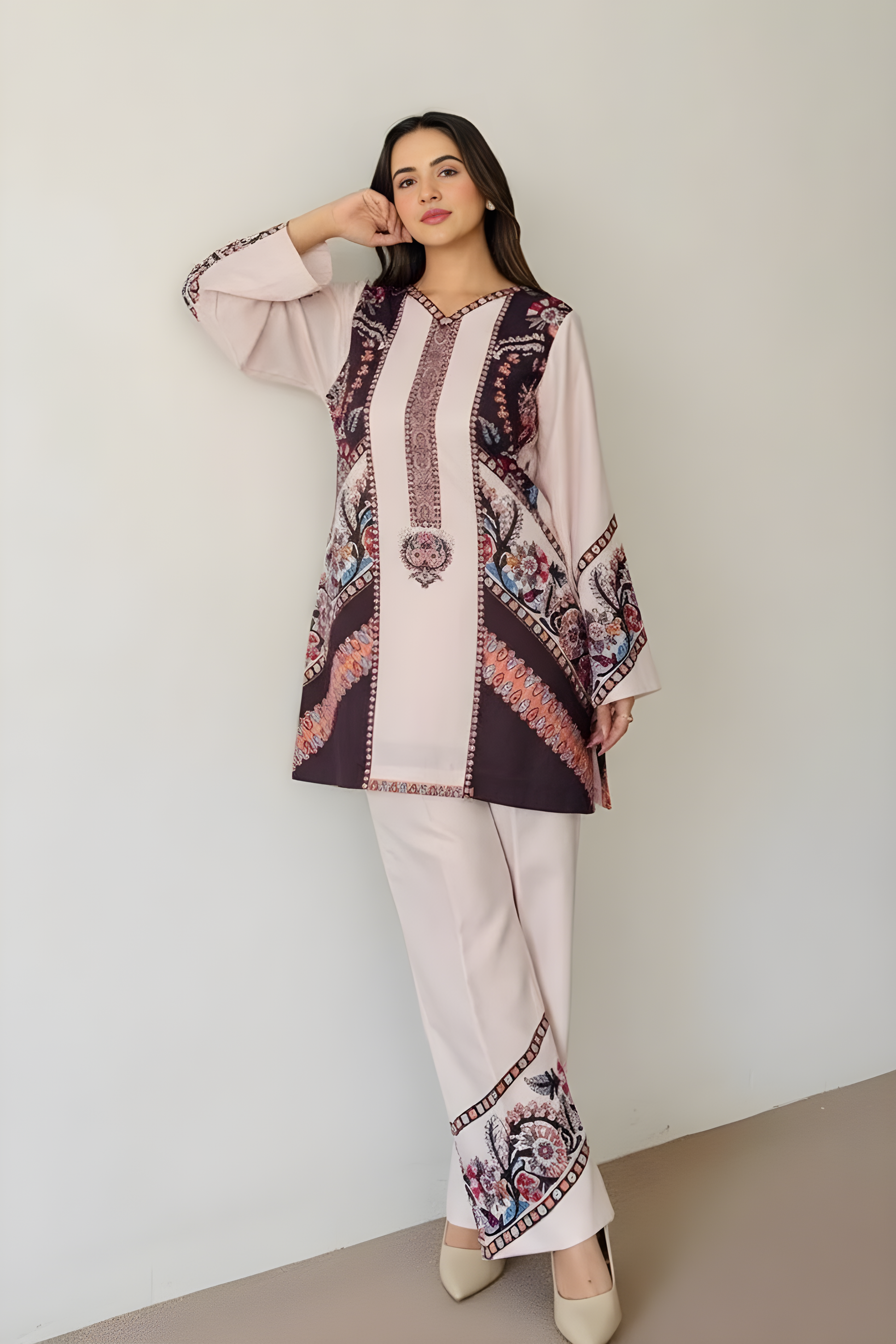 Designer Two-Piece Kurti Pant Set | Floral Print