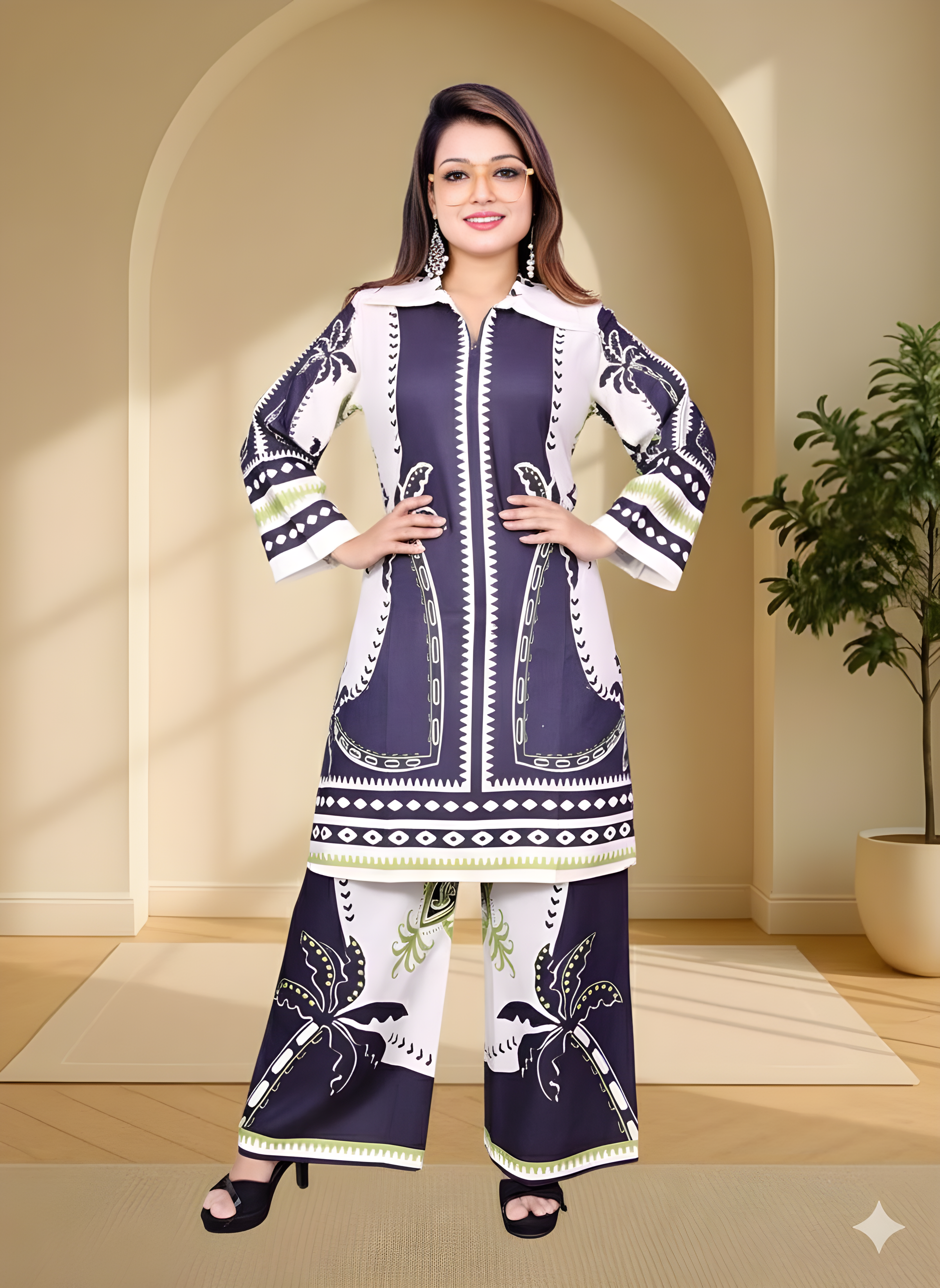 Elegant Printed Kurti Pant Co-ord Set for Girls & Women